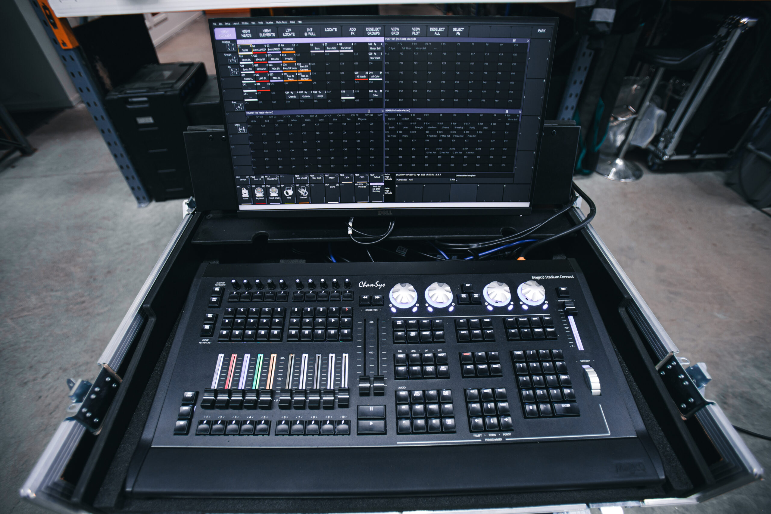 The Chamsys MagicQ Stadium Connect is a PC‑based programming interface mirroring the MQ250M/MQ500M layout, offering 64 universes of direct DMX output and up to 400 visualisation universes for pre‑programming. It features 10 fully motorised backlit faders, 10 RGB‑illuminated playback encoders, dual 100 mm crossfaders and a built‑in network port for Art‑Net/sACN. Supplied in a rugged custom flight case with integrated computer and touchscreen, it’s ready to go wherever your event takes you.