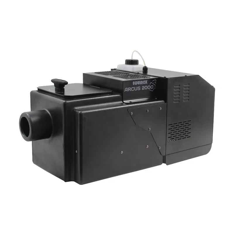The Equinox Arcus 2000 Low Fog Machine uses a 1 500 W aluminium heater block and ultrasonic agitator to churn out thick, floor‑hugging mist. It holds 7 L of distilled water plus a 1.2 L low‑fog fluid tank, warming up in about 4 minutes to deliver roughly 80 m³ of fog per minute. You can trigger it via DMX (three channels), timer or manual modes, and connections include PowerCON power in and 5‑pin XLR DMX in/out. An intuitive LCD with six‑button menu makes on‑board control simple, while the quick‑release output hose lets you direct the fog exactly where you want it.