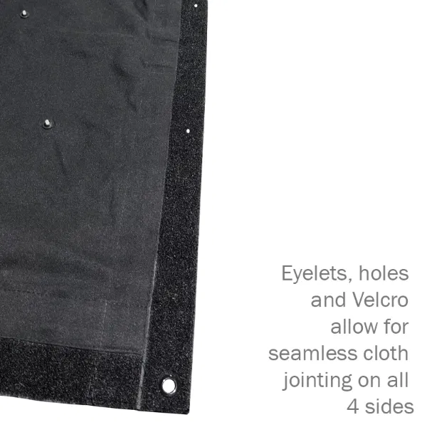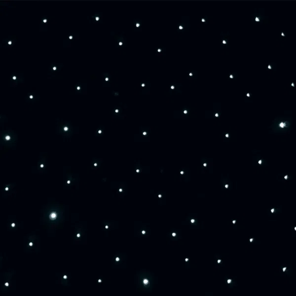 The LEDj PRO LED Starcloth System is an 6 × 4 m heavy‑duty, fire‑retardant black molton backdrop embedded with 192 cool white LEDs arranged in a natural, random pattern for a realistic star effect. Edges are fitted with eyelets, holes and Velcro on all four sides for seamless cloth jointing.