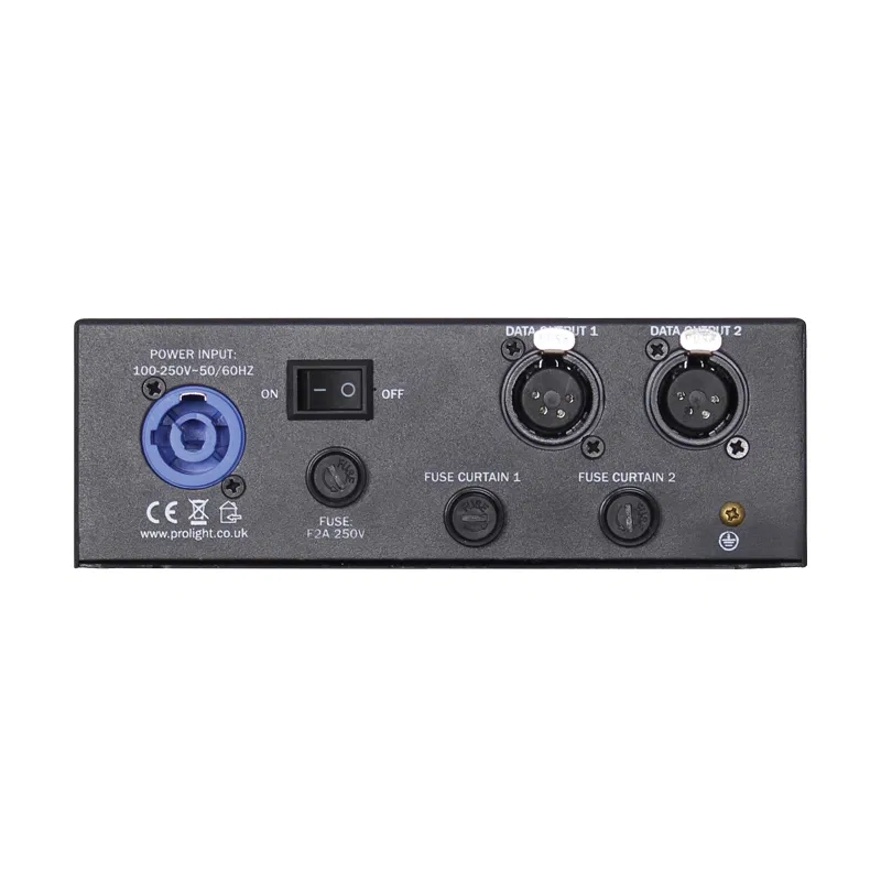 Each kit includes a dedicated DMX controller offering onboard DMX (selectable 7 or 28 channels), sound‑active, auto and master/slave modes, independent control of eight LED groups, 0–100 % dimming and variable strobe, all navigated via a four‑button LCD menu. The controller houses PowerCON power input plus 3‑pin & 5-pin DMX in/out.