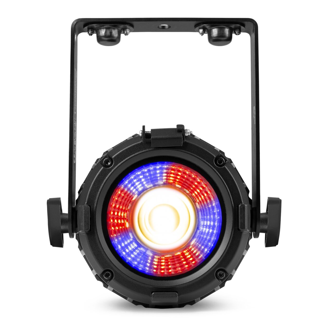 The BeamZ Pro Neutron‑DOT is a linkable hybrid LED fixture packing a 60 W warm‑white engine at its centre plus a 16‑segment RGB backlight for full pixel‑mapping effects. Housed in a compact, IP65‑rated aluminium shell, it throws a tight 23° beam and delivers smooth 16‑bit dimming. Control’s handled via an OLED display with encoder and quick‑access buttons, with full DMX/RDM, Master/Slave and auto‑run modes on tap. Its smart coupling system and powerCON TRUE1 power in/out let you chain units into bars or arrays, while convection cooling and weather‑proof connectors keep it running reliably in any rig.