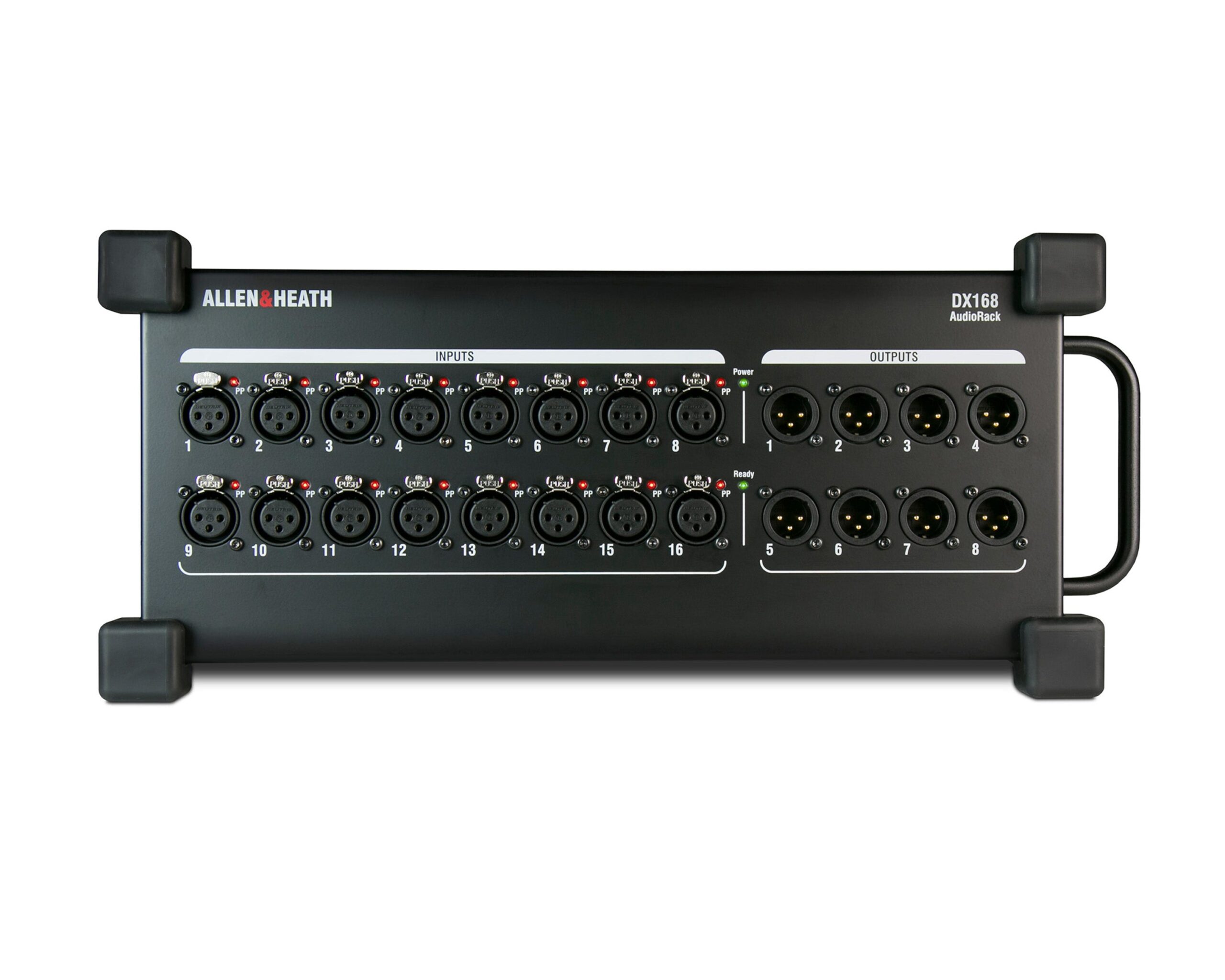 Each DX168 features 16 mic preamps with independent Phantom Power LED indicators, plus 8 XLR line outs.